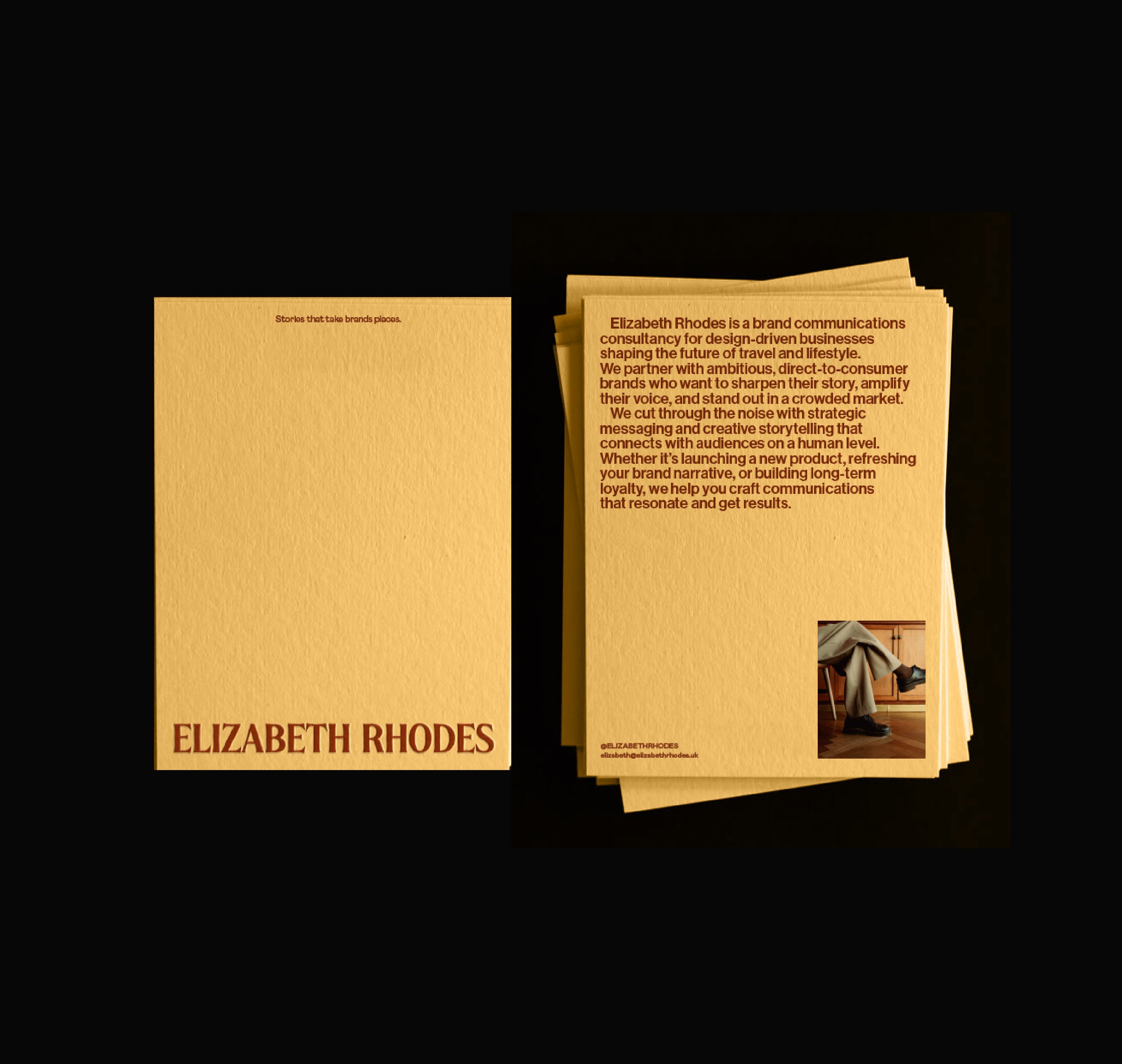 Elizabeth Rhodes is a brand communications agency working with design-led businesses in the travel and lifestyle space. The founder came to us with an ambitious agenda to raise the profile of the agency and take on a new, more challenging set of clients. She wanted a rebrand that would put her on the map.