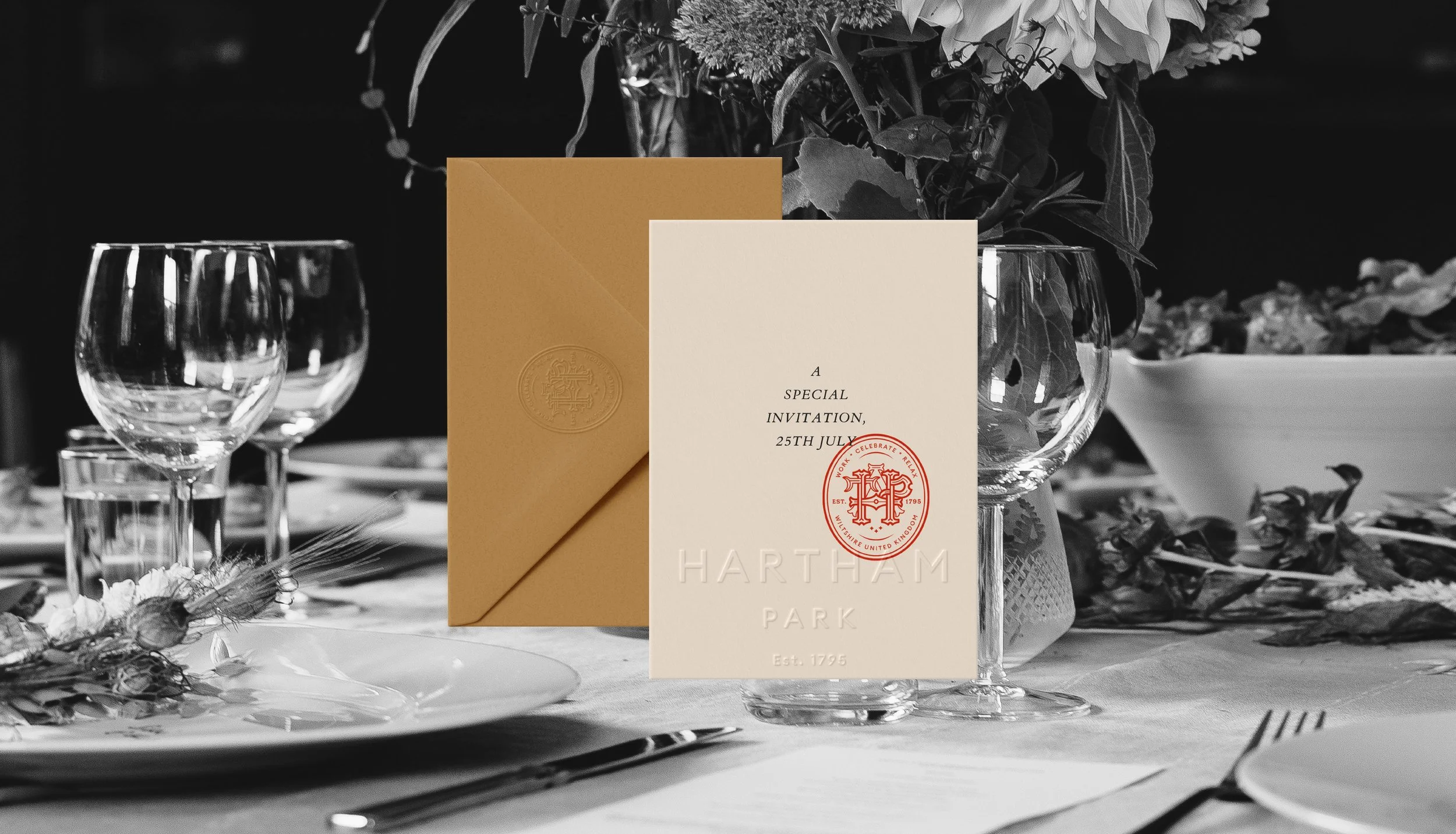 Hartham Park is an 18th century country house and estate in Wiltshire, but its reputation had declined in recent decades. Its new owners wanted to elevate it into a premium destination for weddings and spectacular parties, as well as a restaurant and holiday in cottages nestled in the grounds. Our job was to create the brand that would dramatically reposition the Estate and attract a whole new level of attention.